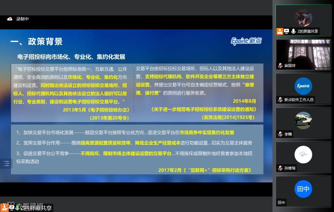 为推进电子招投标向市场化、专业化、集约化发展,加快构建数据共通、公平透明的招投标环境,2022年4月22日,由国泰新点软件股份有限公司主办的“新点电子交易平台培训沙龙【潍坊专场】”在线召开,来自潍坊的50多家代理机构从业人员参与本次培训会。