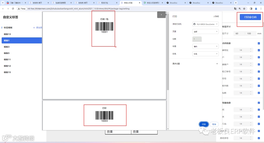 用户可以自己定义打包标签的数据,解决不用等售后实现。