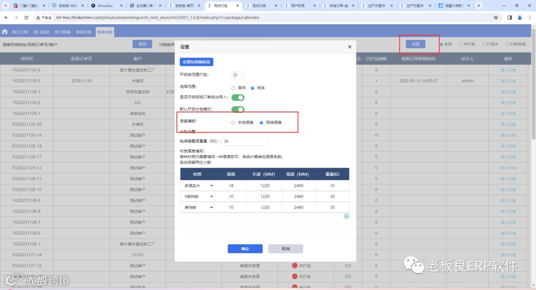 5、左侧包装箱报表,可以设置多套,但是打印的只会一套。