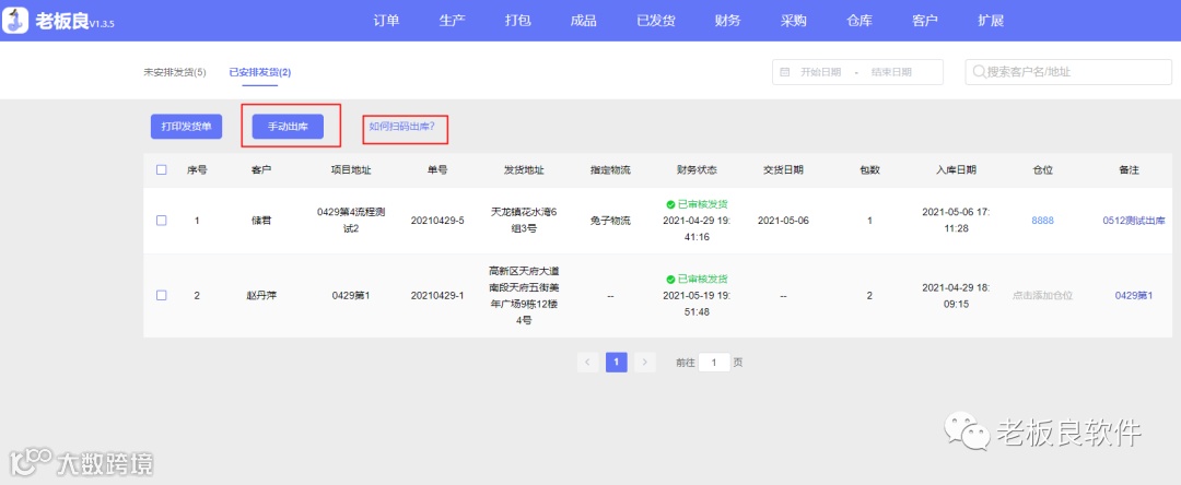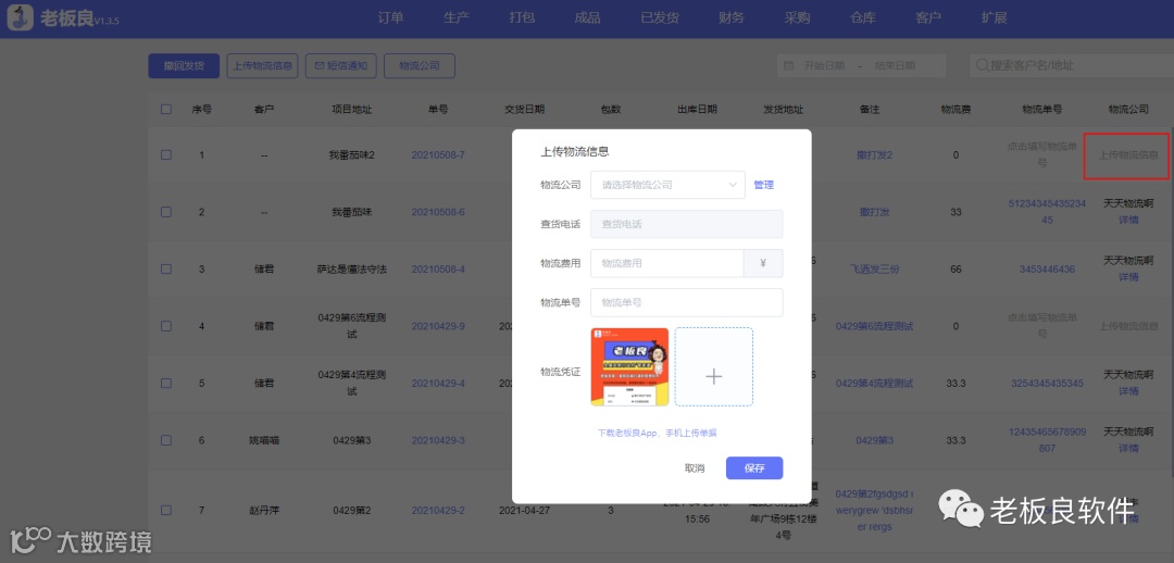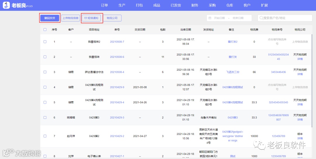 发货:撤销发货/短信通知客户发货/上传物流单据