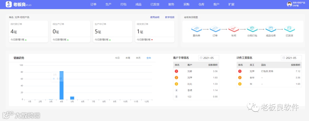 首页:数据统计,厂长/老板一键查看,决策用数据说话