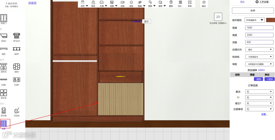 6、新增格栅装饰件,可在柜体内添加,也可添加在房间内做背景墙。