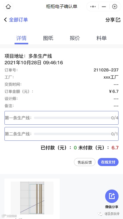 1、进度条显示为生产线的显示,点击后可查看具体环节。