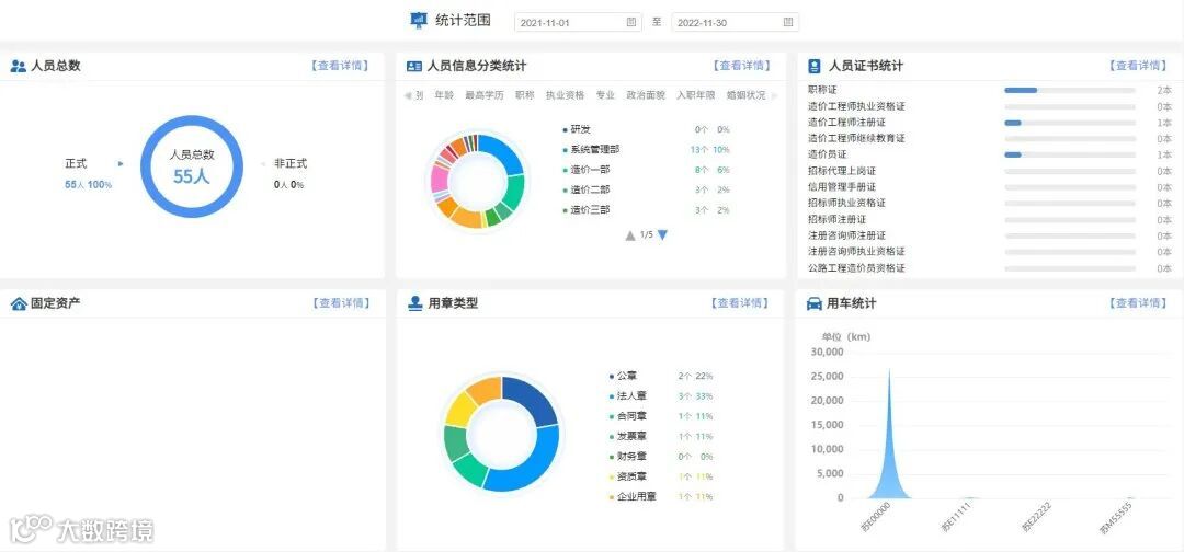新点咨询机构业务云平台借助驾驶舱模块,对企业各类经营数据和业务数据进行汇总,以统计报表、图表等形式多维度展示企业各方面运行状况,着重把控企业“人、材、物”三要素的管理,大到公司收入及支出,小到员工日常出差、用章费用及各类日常办公行为,数据分析层层递进,实现公司业务和财务一体化管理,帮助领导全面掌握企业信息,为领导决策提供数据支撑。