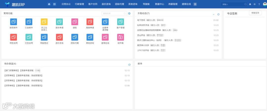 △ 南京建凯咨询企业业务云平台界面