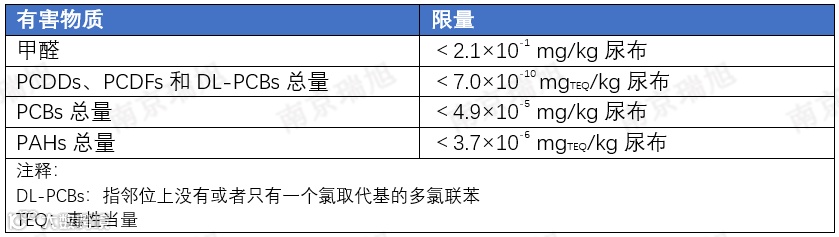 根据提案内容,婴童纸尿裤中的有害物质应符合下表要求: