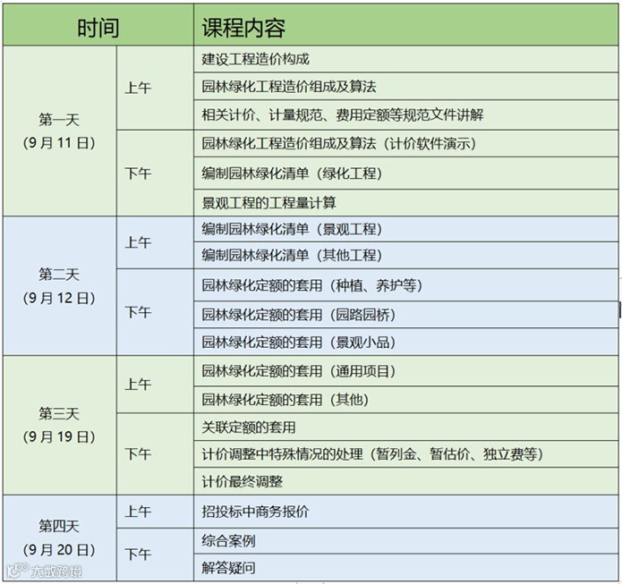 2、掌握园林绿化工程造价基础知识,熟悉工程造价整个过程、计价方法和计价依据