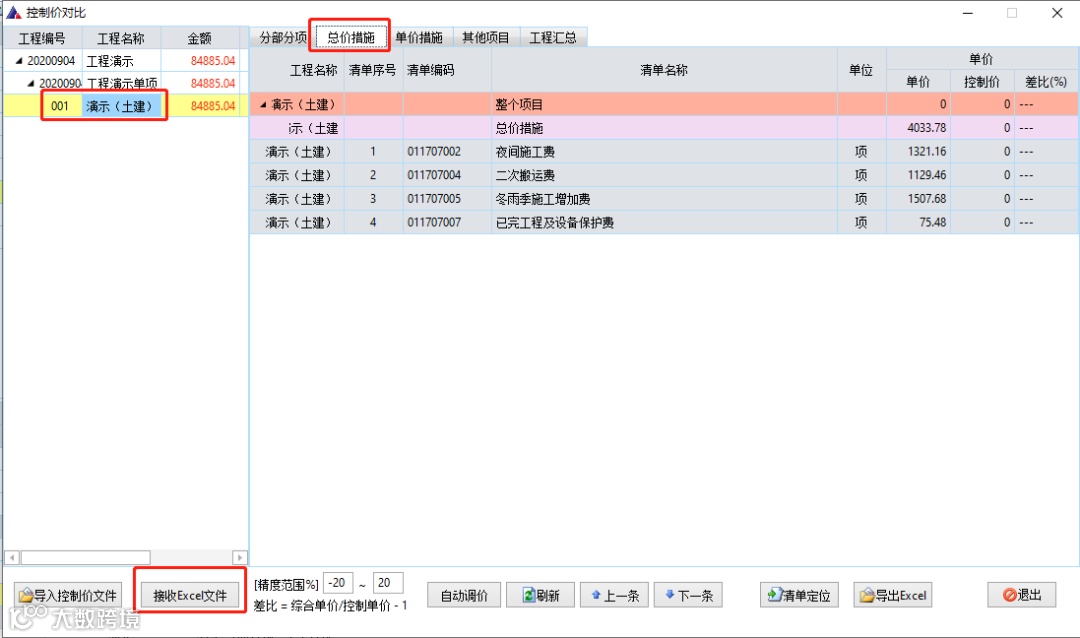 5、在控制价对比时,软件支持山东省接口控制价文件