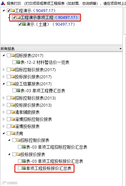 其中项目下增加:封-3投标报价,表-02-1工程项目投标报价汇总表;单项下增加:单项工程投标报价汇总表。