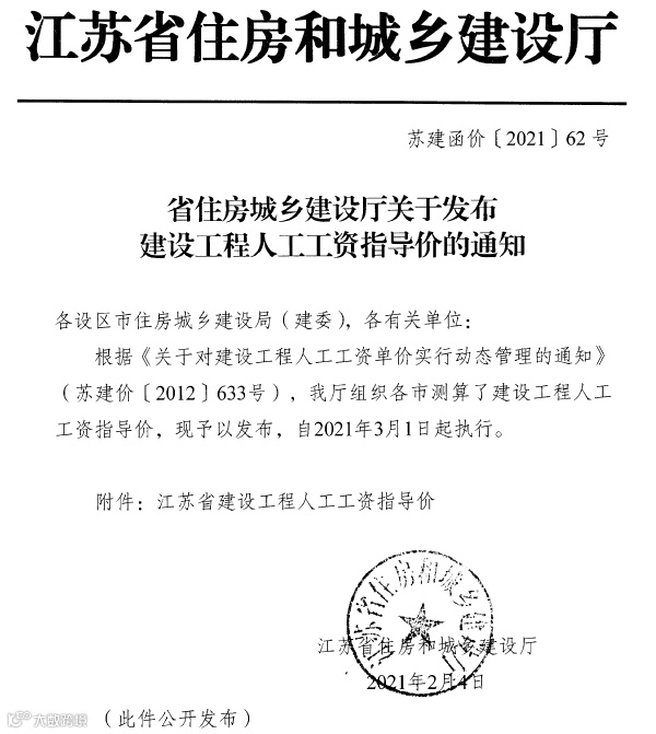 二、依据苏建函价【2021】062号文新增最新人工工资