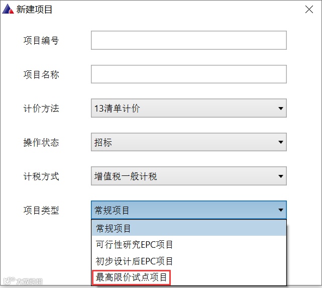 新建项目时增加最高限价试点项目选择。非最高限价试点项目工程选择【常规项目】,最高限价试点项目工程请选择【最高限价试点项目】。