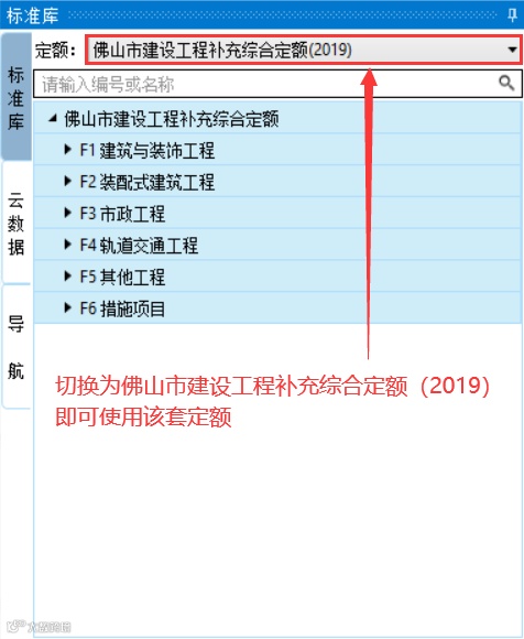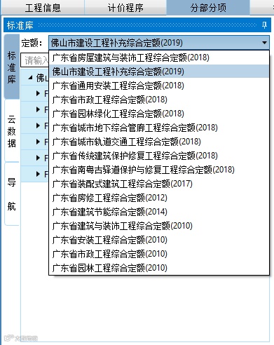用户在使用新点清单造价软件(广东版V10.X)时,可直接在【分部分项】界面中切换标准库对应的定额名称,即可使用该套定额。