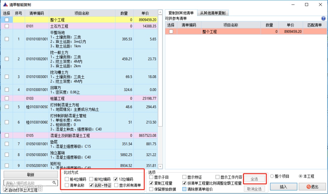4、清单智能复制比对方式可多选,选项中新增全选功能
