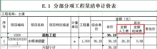 3、分部分项界面新增定额人工费合价、定额机械费合价列