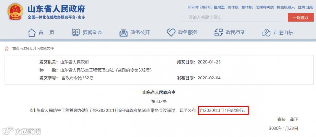 山东省人民政府办公厅2020年1月23日印发