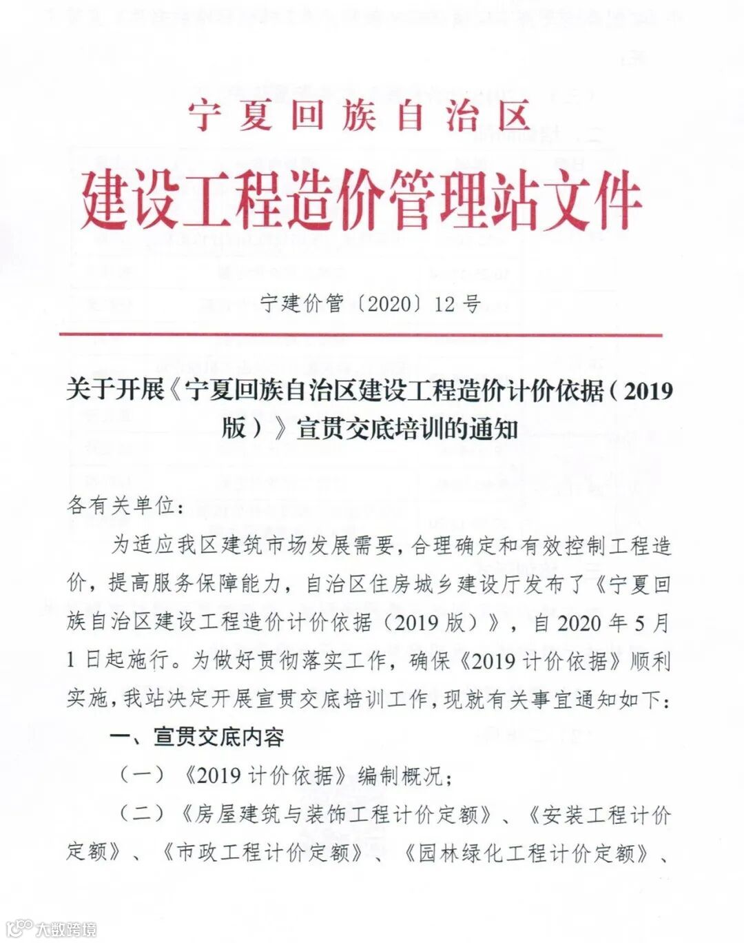为适应宁夏地区建筑市场发展需要,合理确定和有效控制工程造价,提高服务保障能力,宁夏回族自治区住房城乡建设厅发布了《宁夏回族自治区建设工程造价计价依据(2019版)》,自2020年5月1日起施行。