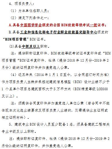 3.3 业绩要求:近五年来(2014年1月1日至今,以合同签订时间为准)承接过建筑信息模型(BIM)设计业绩不少于1个且单个项目总建筑面积大于5万平方米(BIM精度等级LOD300及以上)。