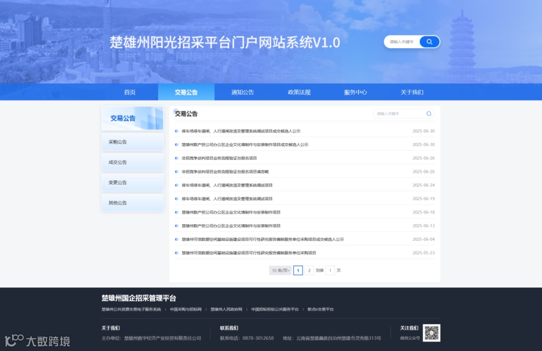 近日,为楚雄彝族自治州属国企“非依法必招”业务量身打造的楚雄州阳光招采平台正式上线,平台由楚雄州数字经济产业投资有限责任公司与国泰新点软件股份有限公司联合打造,致力于为各类采购主体提供全链路、全过程的阳光采购服务与支撑,既解合规之忧,提效率之速,又畅通了监管渠道,助力国企招标采购业务健康有序发展。