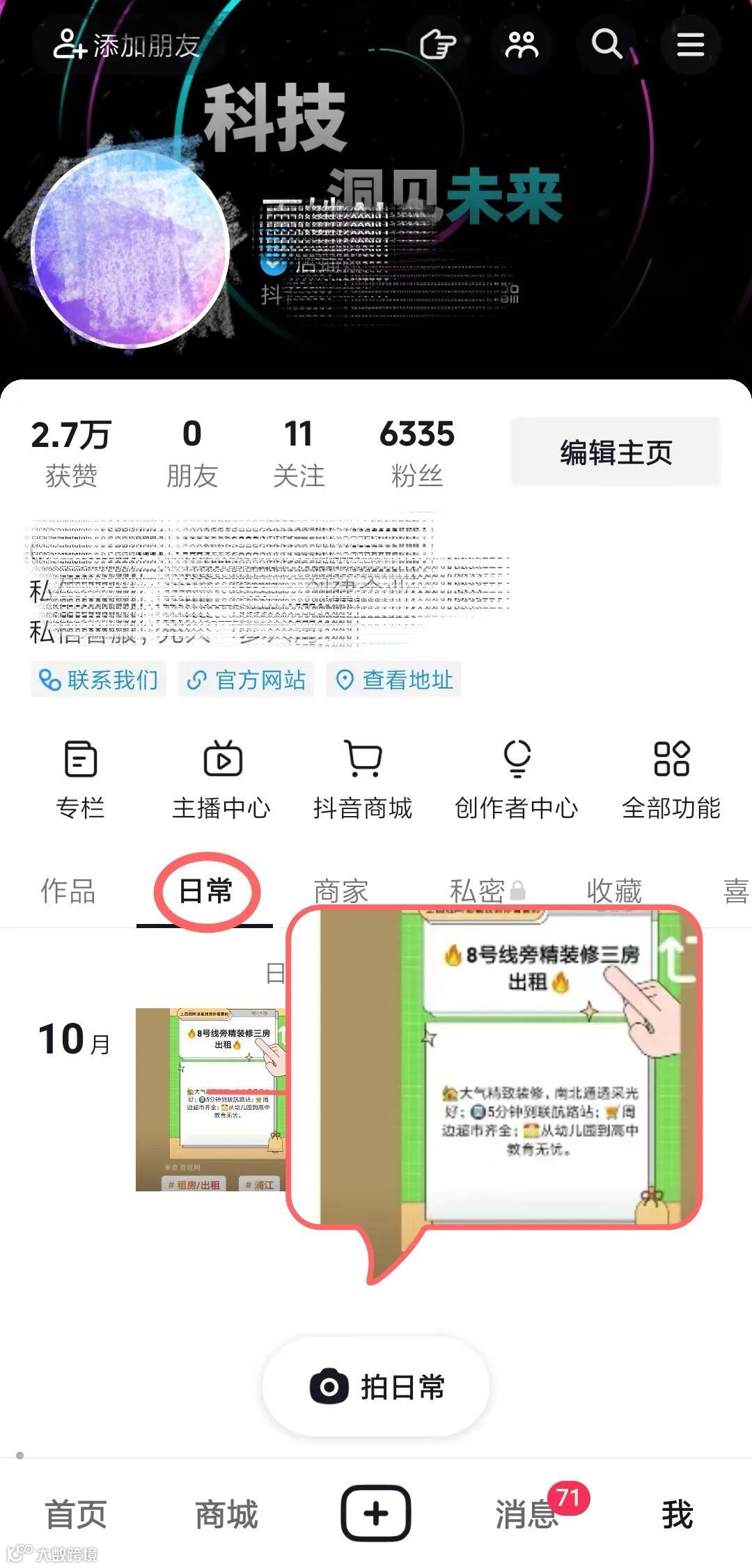- 发布后内容将出现在个人账号中的-「日常」列表中。