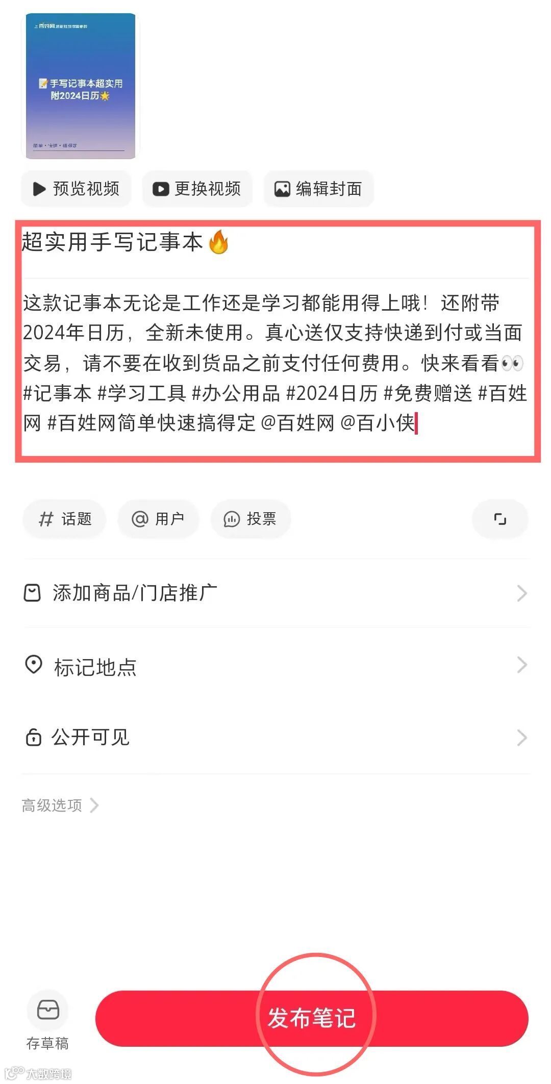 - 点击发布笔记。