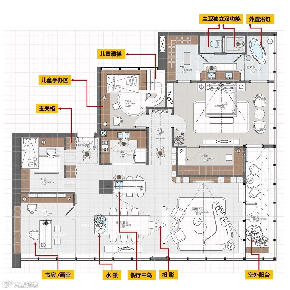 而对于有钱人来说,确实是值得参考的,豪宅,追求的是居住品质,而顾佳的房子从整体户型设计来看,有以下几大设计亮点,可以说是未来住宅的选择趋势:
