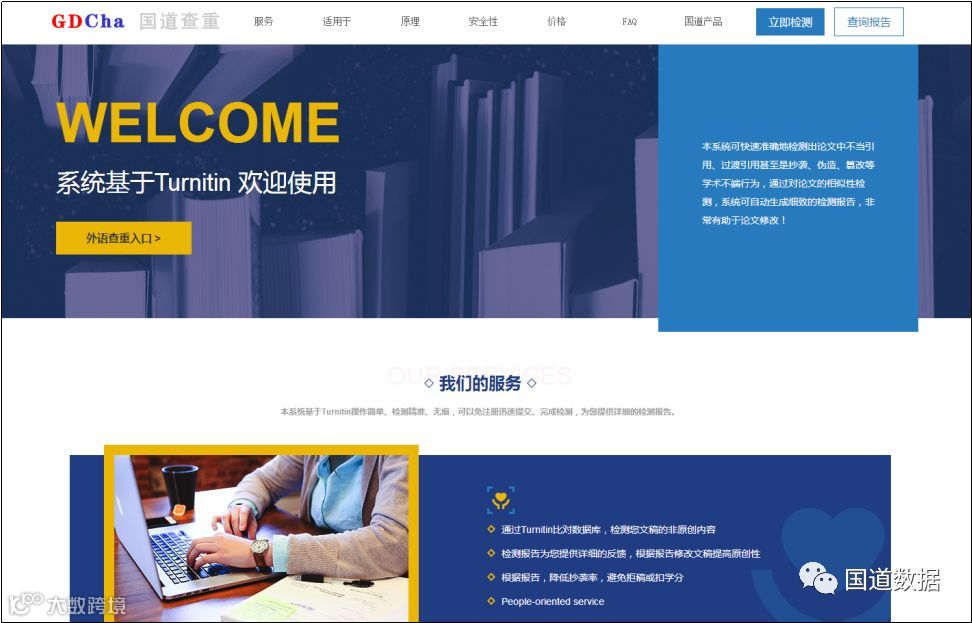 为了解决大家外文论文查重的问题,国道数据基于权威的Turnitin数据库开发了国道查重系统,只要重复率低于20%,可放心往任何地方投稿。这个系统集成于国道产品MeTeL教学资源平台、SpecialSci国道外文专题数据库和DDS国道外文学位论文集成发现系统三个数据库平台中,无论你打开哪个数据库,都可以轻松找到国道查重,开启论文查重。