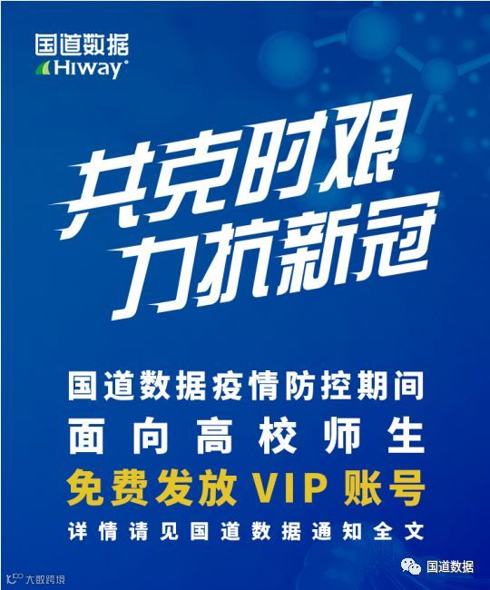 新冠肺炎防控期间,为帮助我国高校师生在校外科研及学习,也为疫情防控贡献我们的一份力量,国道数据决定再次特别免费开放一批VIP账号,详情如下: