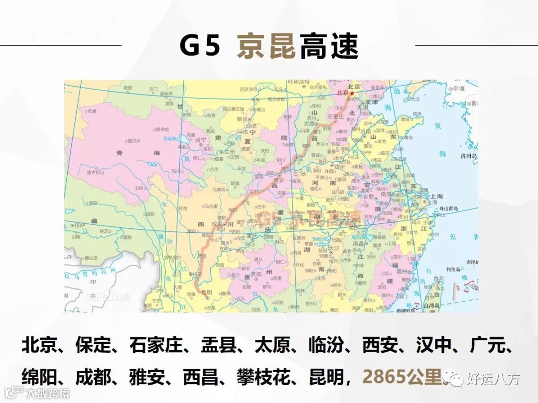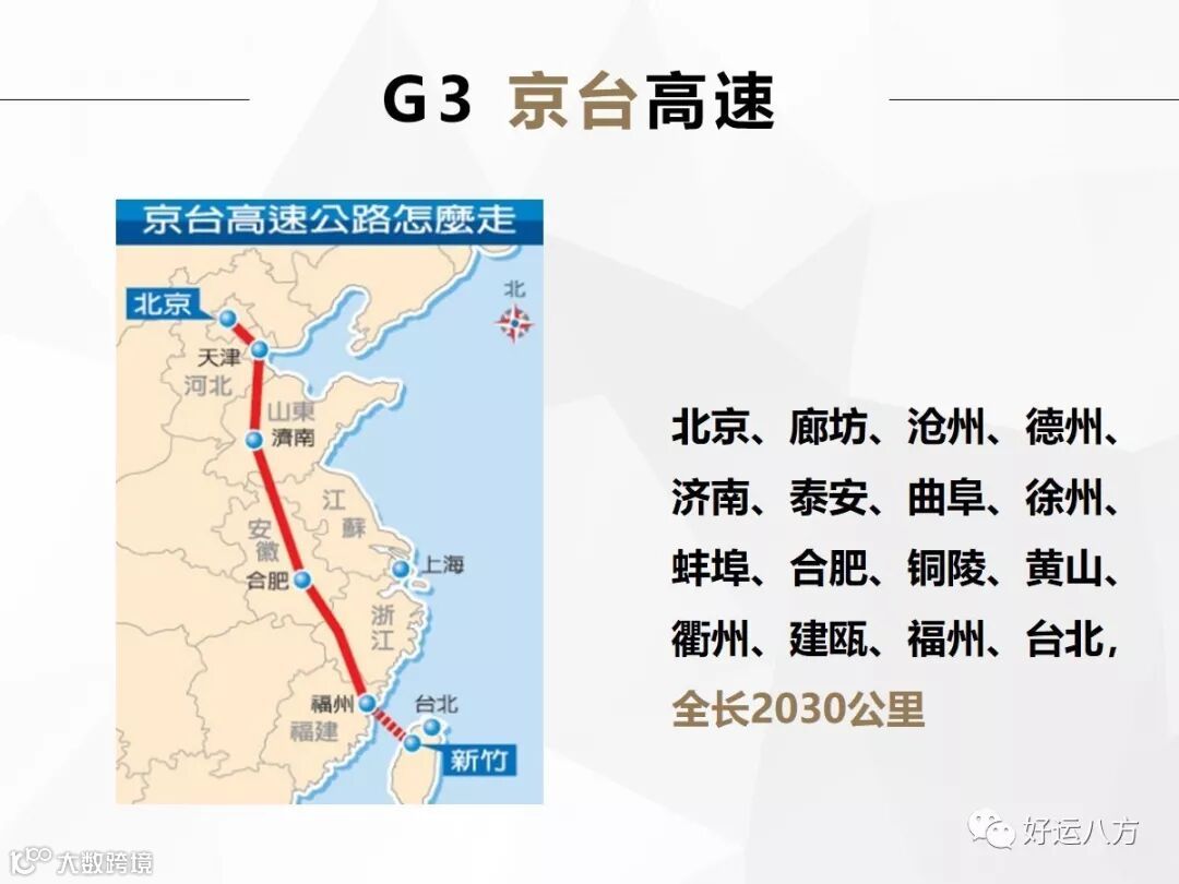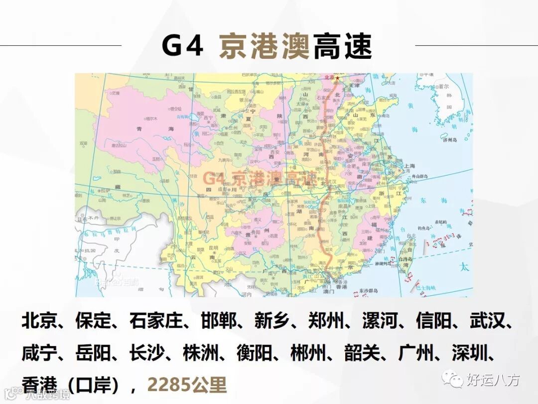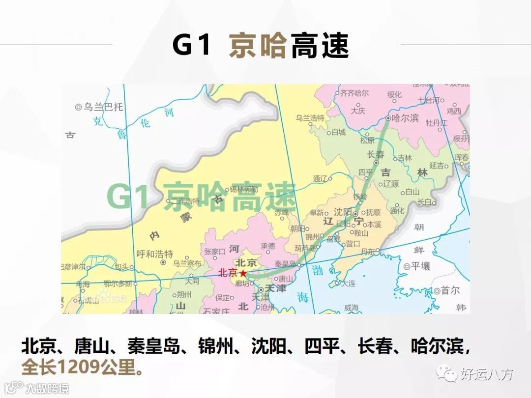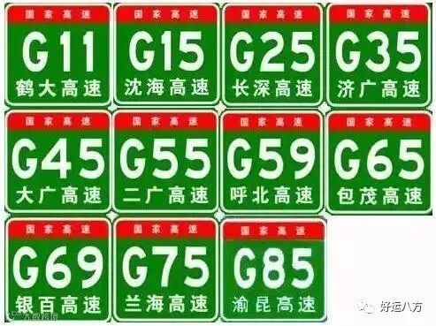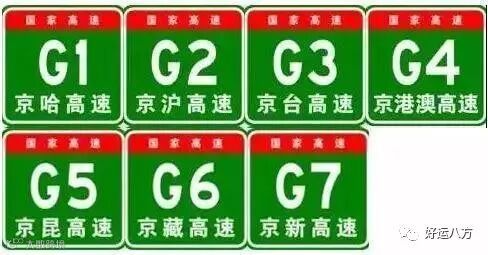 其次,G字母是国字头,编号由G+阿拉伯数字组成,G+1位数是首都放射线,G+2位奇数是纵线,G+2位偶数是横线。