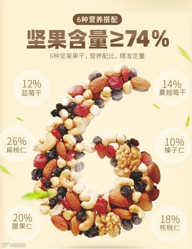 沃隆每日坚果,不同的果仁、果干,营养价值比单一果仁、果干更高。