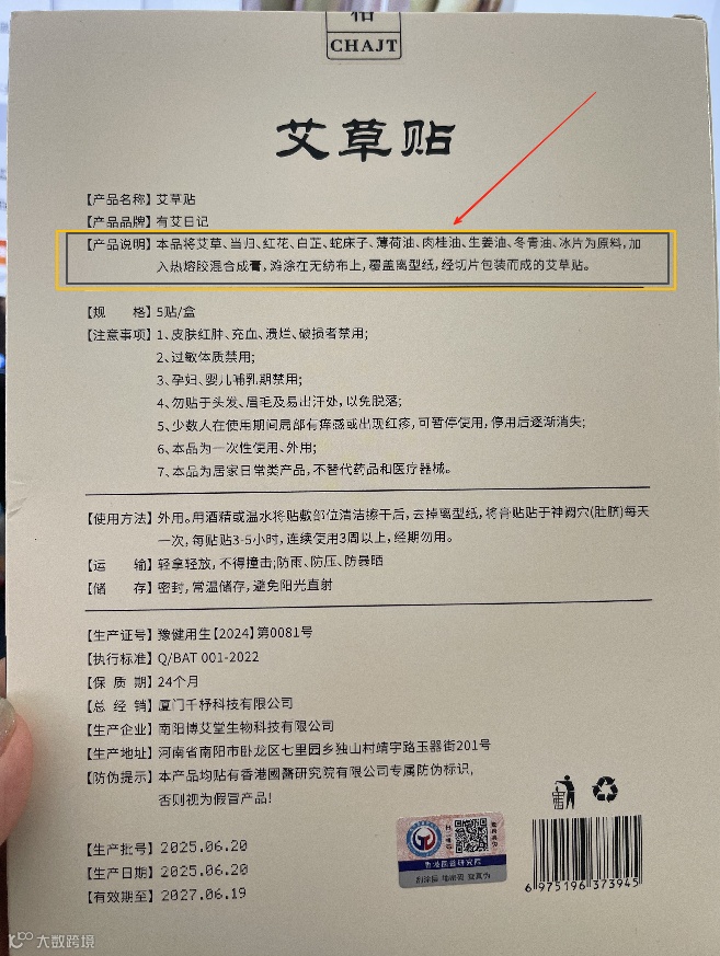这款艾草贴精选10味草本经典配伍,科学配比,每一味都经过严格筛选,从源头把控品质。
