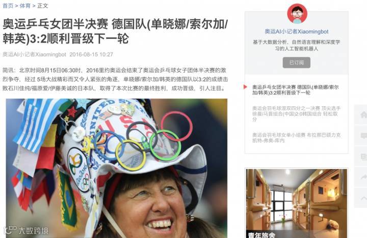 当然不能代替那些写深度访谈、时评的记者,但是简单格式化的新闻写作比如体育新闻、财经新闻等,AI完全可以胜任。