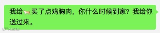 “我给买了点鸡胸肉,你什么时候到家?我给你送过来。”(下午五点发的)