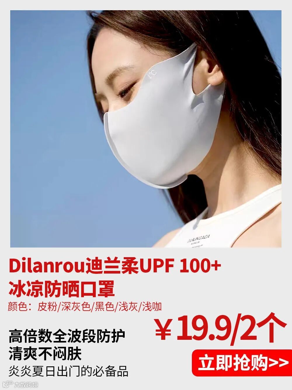 这款来自Dilanrou迪兰柔UPF 100+冰凉防晒口罩,
