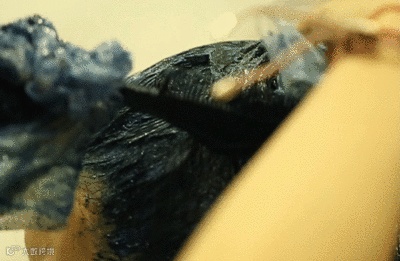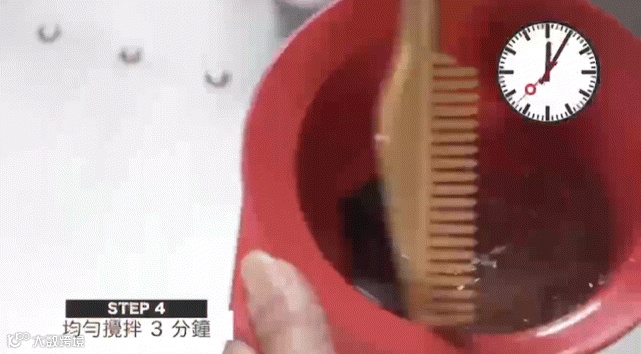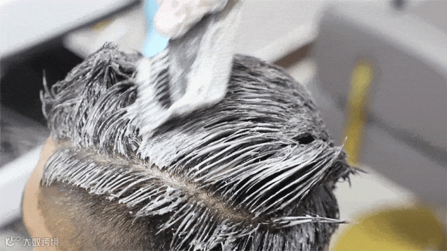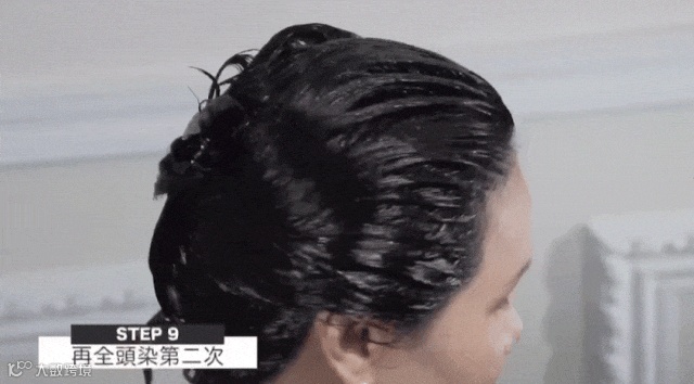 👉第二步:戴上手套,沾取混合剂均匀涂抹在干发上,停留10分钟后,再重复一遍这个动作再次抹匀混合剂,然后停留30-50分钟。