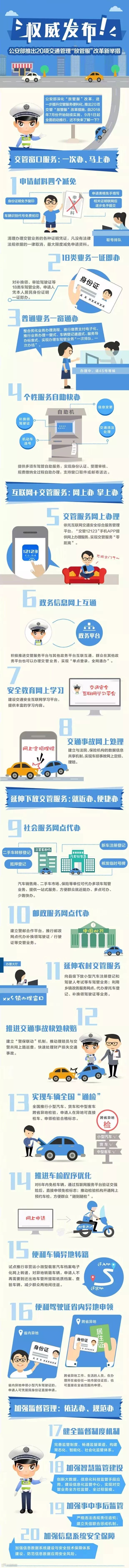 近日公安部办公厅印发了《公安交管部门进一步深化“放管服”改革提升交管服务便利化的措施》,推出20项交通管理“放管服”改革新措施。