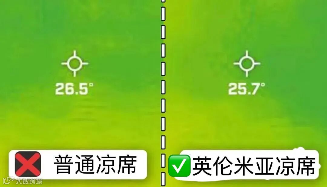 普通冰丝凉席26.5度,英伦米亚凉席25.7度 ,相差了1℃。