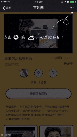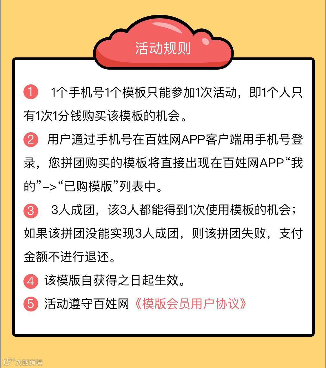拼团成功后,您将会收到短信和APP私信通知。您可以进入百姓网App,点击“我的”→“我的模版”进行使用。
