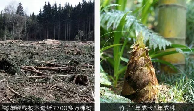 以竹代木!选用成才周期短的竹子作为原材料!相比选用9-15年才能长成的树木,