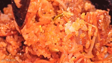 软糯的米饭配上脆爽,酸酸辣辣的辣白菜,堪称下饭神器。