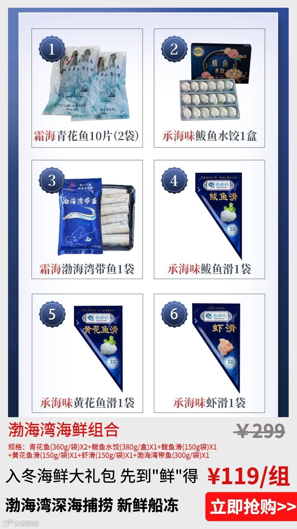 里面有青花鱼、鲅鱼水饺+鲅鱼滑+黄花鱼滑+虾滑+渤海湾带鱼,让你一次吃个够!
