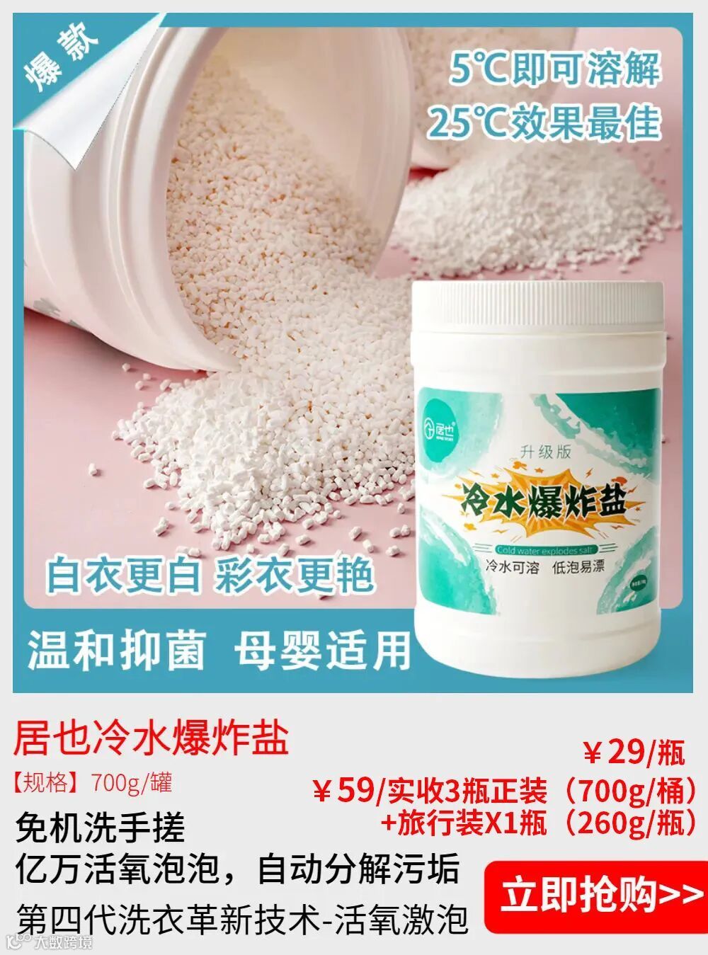 居也爆炸盐还有亮白增艳的作用,衣服越泡越新!
