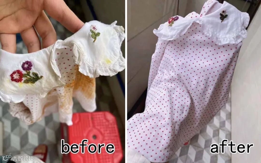 尤其是宝宝到处乱蹭,穿过的衣服很难有干净的,这时候用它泡一泡,立刻焕新!