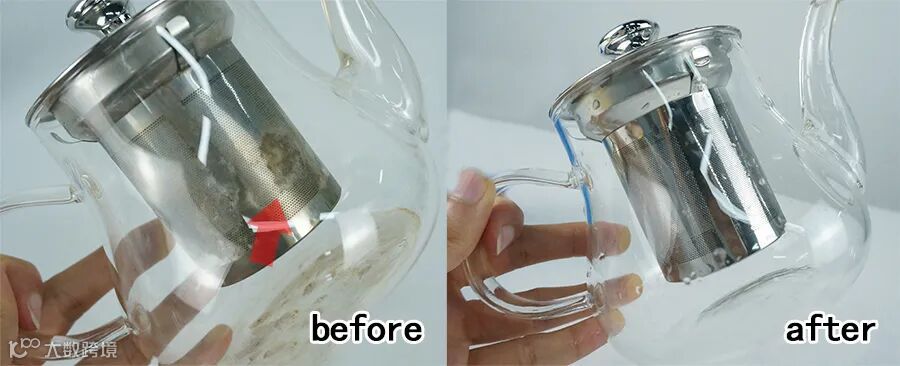 油渍、发霉与铁锈齐飞的难洗茶壶,倒入了爆炸盐泡,立刻就看到爆炸盐的分子在快速的分解着脏东西;