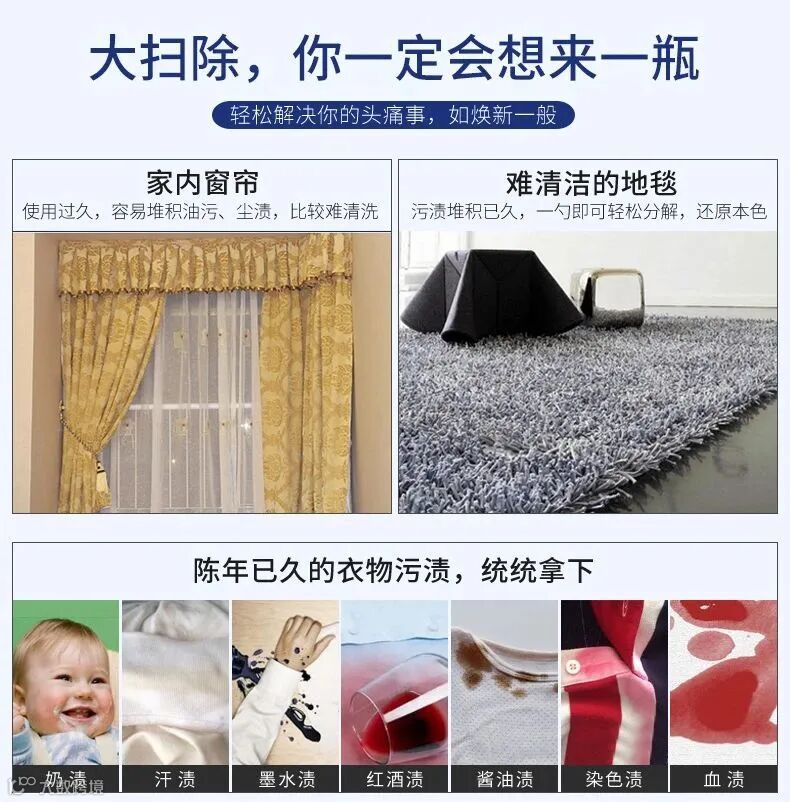 针对衣服发黄,衣服霉斑,果汁酱,床单顽固污渍,油烟物质,都能轻松应对。