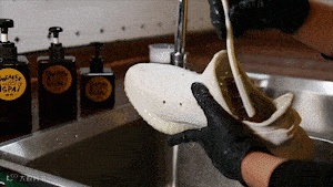 现在把它扔到泡了爆炸盐的水中,遇到顽固的油污多泡一会,我们浸泡了60分钟;