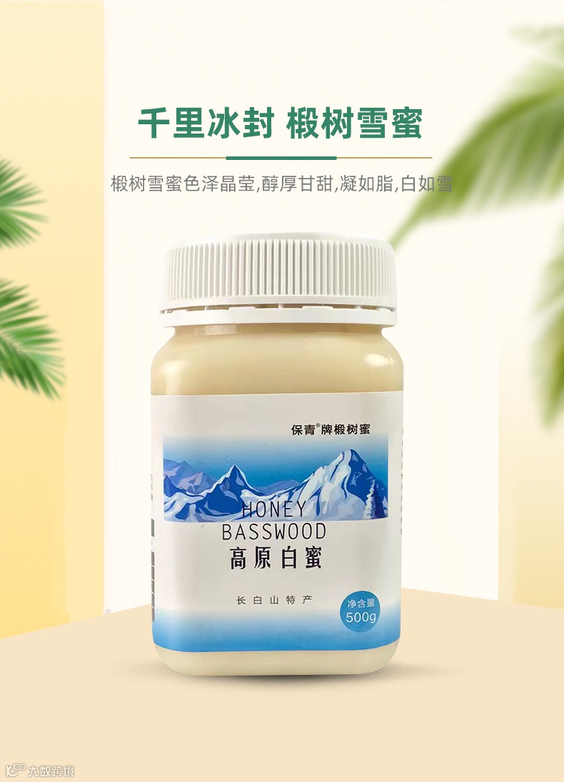 这胜似茗茶的白蜜,说的就是来自东北长白山的椴树蜜,因色白如凝脂,也被称为白蜜。蜜源来自长白山—天然保护区。