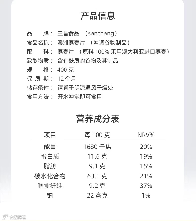 因为配料表干净,只有「燕麦片」,完全无人工添加剂,妥妥是100%纯燕麦!