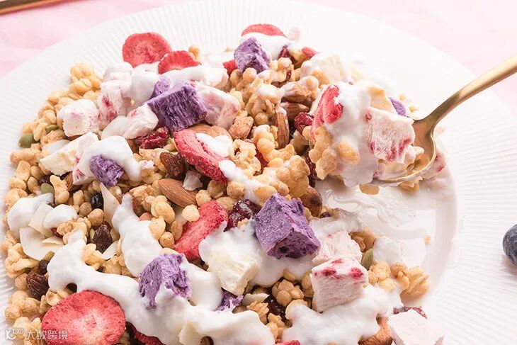 冻干酸奶绝对是点睛之笔,有蓝莓、草莓、黄桃3种风味,酸甜、酥脆的口感让人上瘾。
