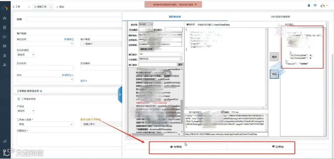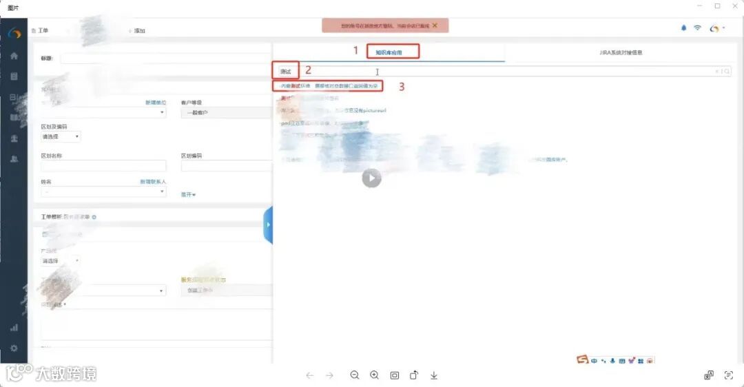 (2)建单过程检索:新建工单界面,点开侧面小三角,在知识库栏输入关键词搜索,选择您需要的知识点