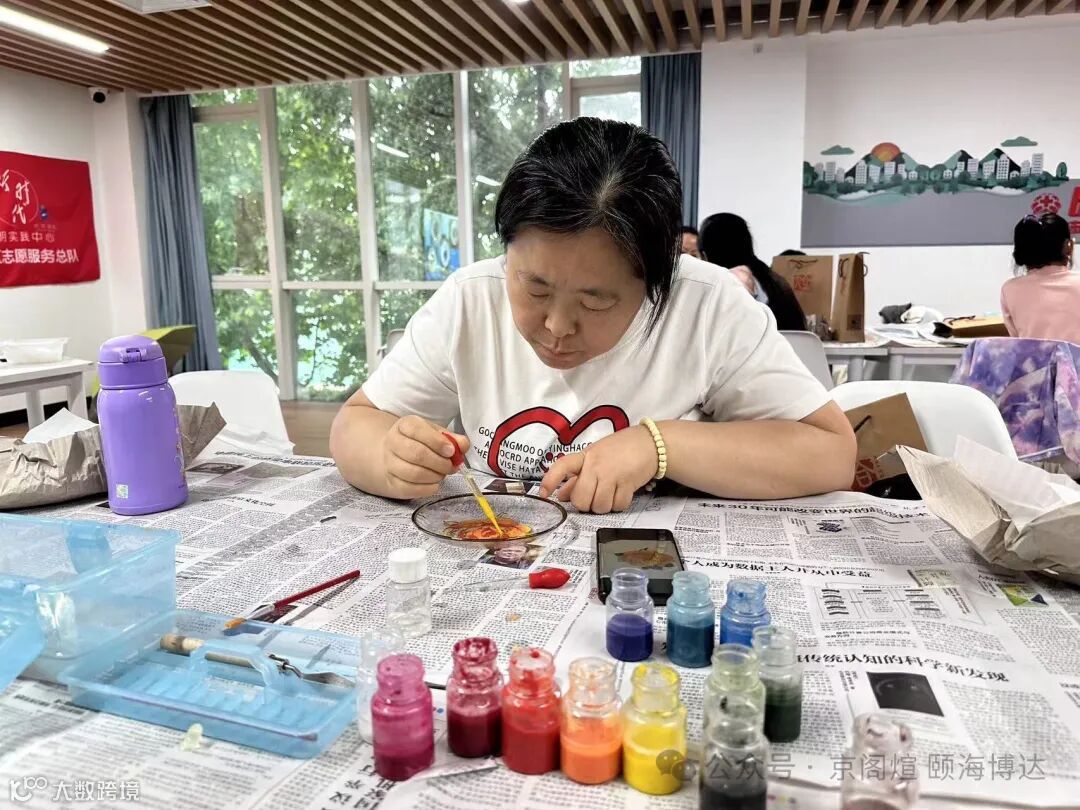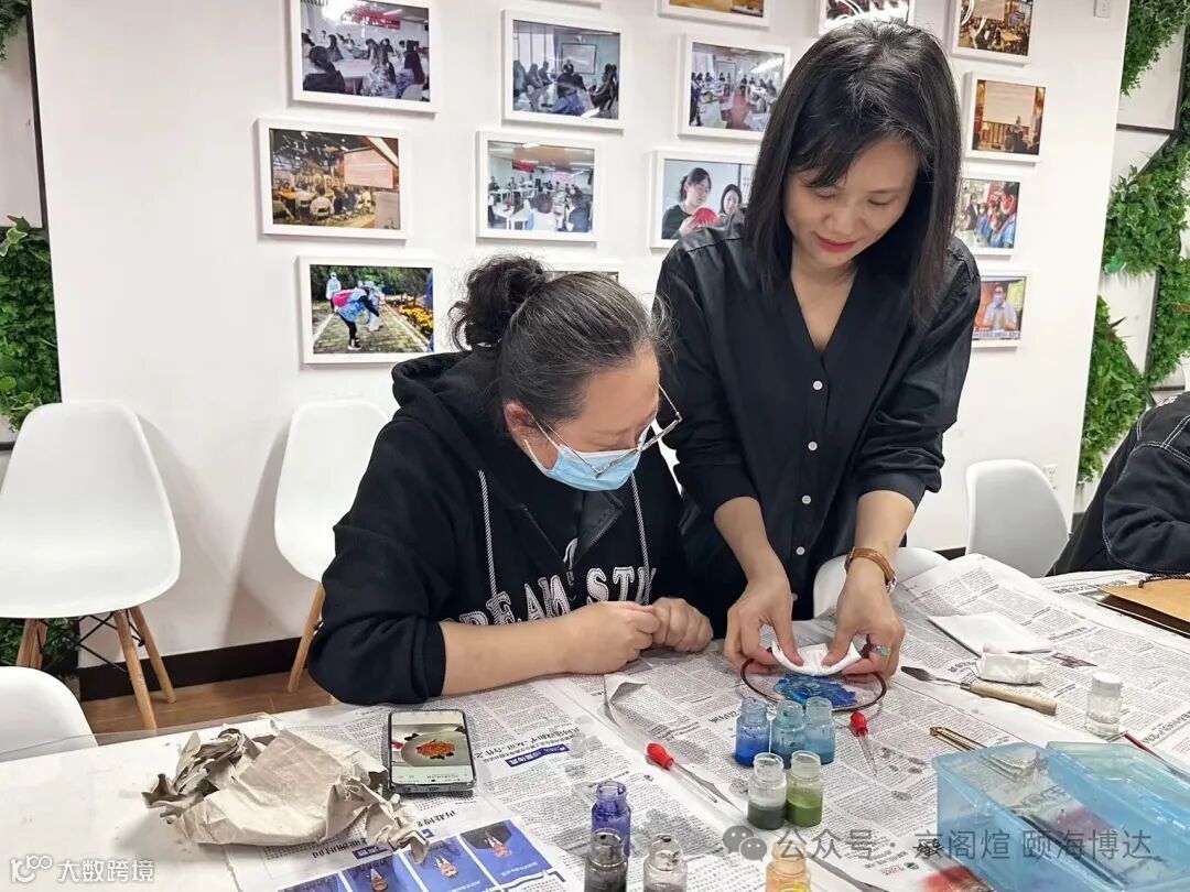 居民们纷纷展现出对掐丝珐琅的学习热情,在亲自动手体验的过程中,他们克服了初时的忐忑,并在老师的悉心指导下,成功完成了自己的作品,这一过程无疑让每个人深感满足与自豪。大家在这个过程中体会到中华民族伟大艺术的魅力,也挖掘了自己的艺术力,还收获了美丽的掐丝珐琅水晶盘,可谓是满载而归啊!